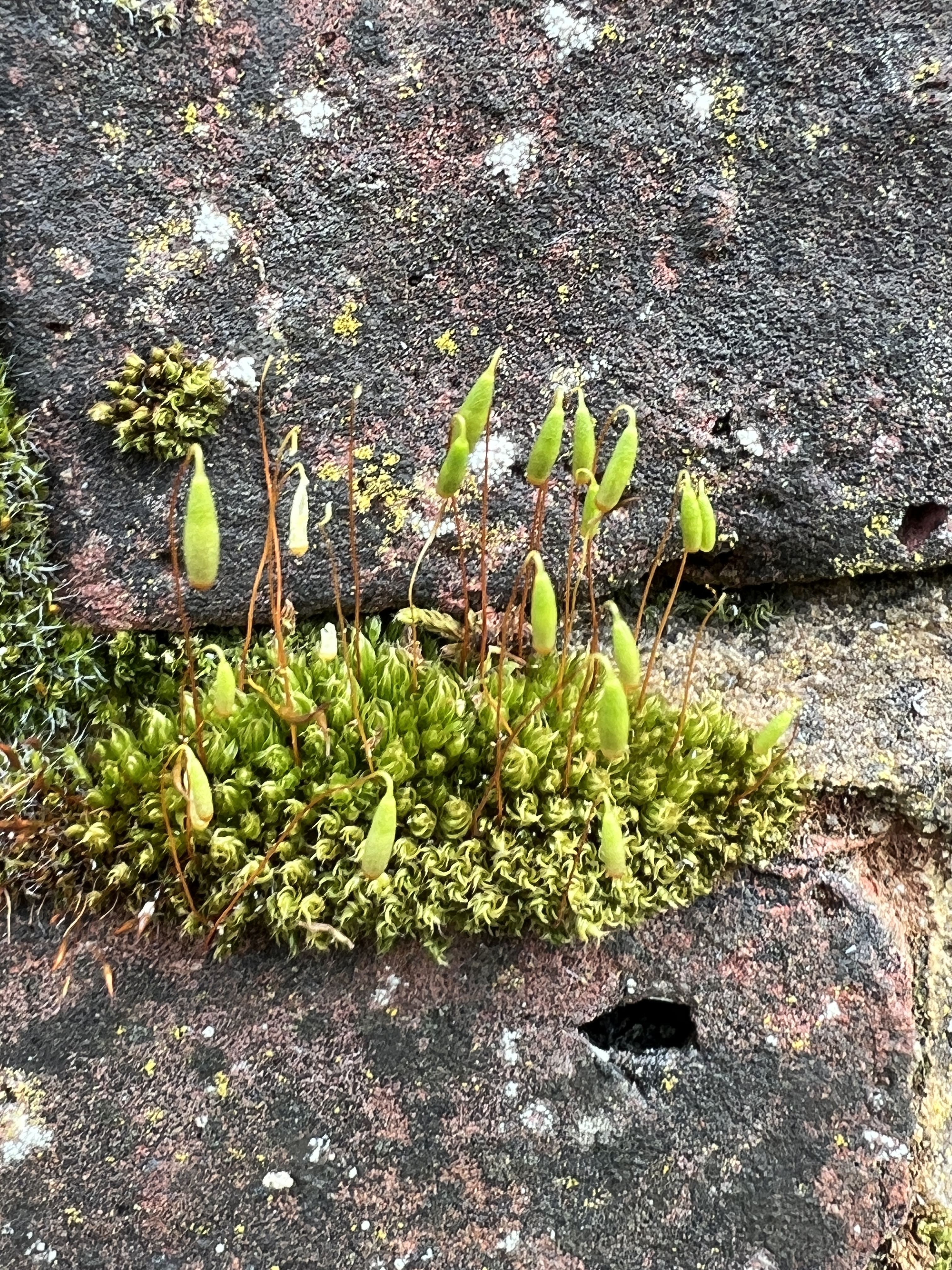 - If you can see capsules, note their colour and shape. Are they long and nodding like those of Bryum capillare, or short and hidden among the leaves like Orthotrichum anomalum?