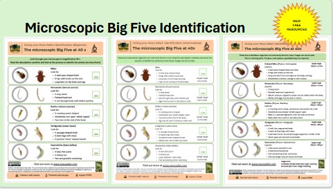 The headlines: There are now refreshed, rebranded and updated Moss Safari identification sheets, instruction sheets and infographics about each of the Microscopic Big Five. They are at three levels: Primary, secondary or Tertiary. Download them, use them. Let me know what you think! There were ‘oohs’ and ‘ahhhs’ at these, so I expect lots of downloads!