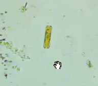 We also observed yellow-brown rectangular shapes. These are diatoms, a type of single-celled algae.