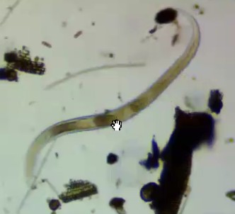 • A nematode thrashing through the water film